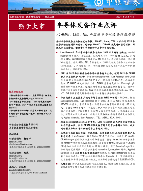 【中银证券】【20210204】从AMAT、Lam、TEL年报看半导体设备行业趋势-4页 行业研究