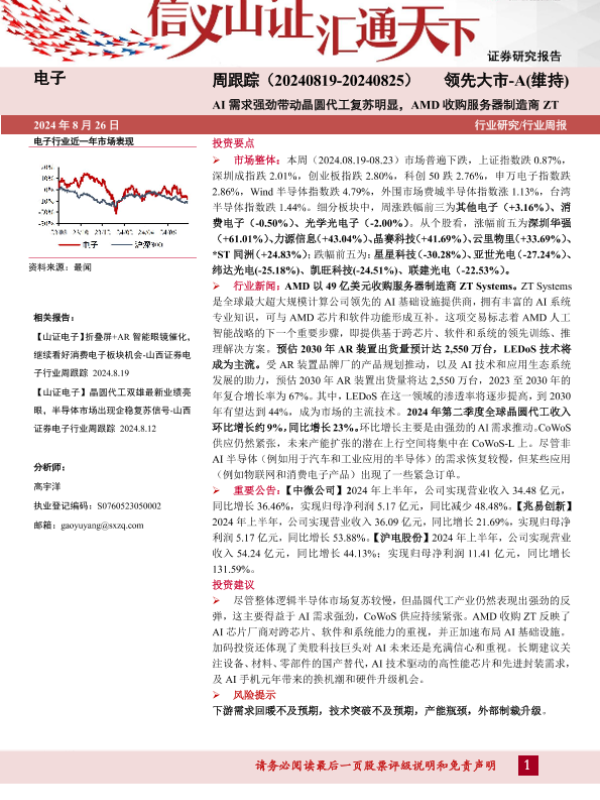 【山西证券】【20240826】2024年09月04日更新-【山西证券】电子行业周跟踪:AI需求强劲带动晶圆代工复苏明显,AMD收购服务器制造商ZT-13页 行业研究