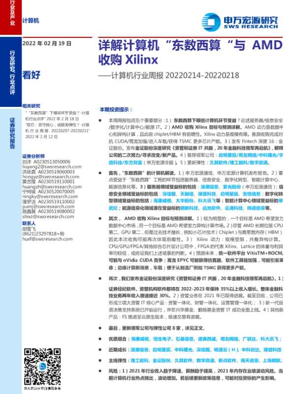 【申万宏源】【20220219】详解计算机“东数西算“与AMD收购Xilinx-25页 行业研究