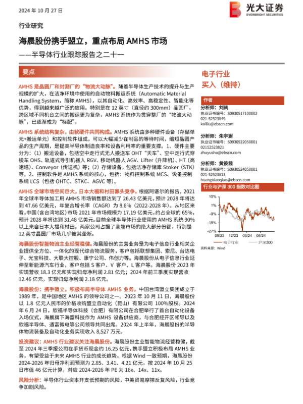 【光大证券】【20241027】半导体行业跟踪报告之二十一:海晨股份携手盟立,重点布局AMHS市场-17页 行业研究
