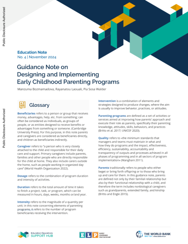 【World Bank】【202411】Guidance Note on Designing and Implementing Early Childhood Parenting Programs-20页 指南
