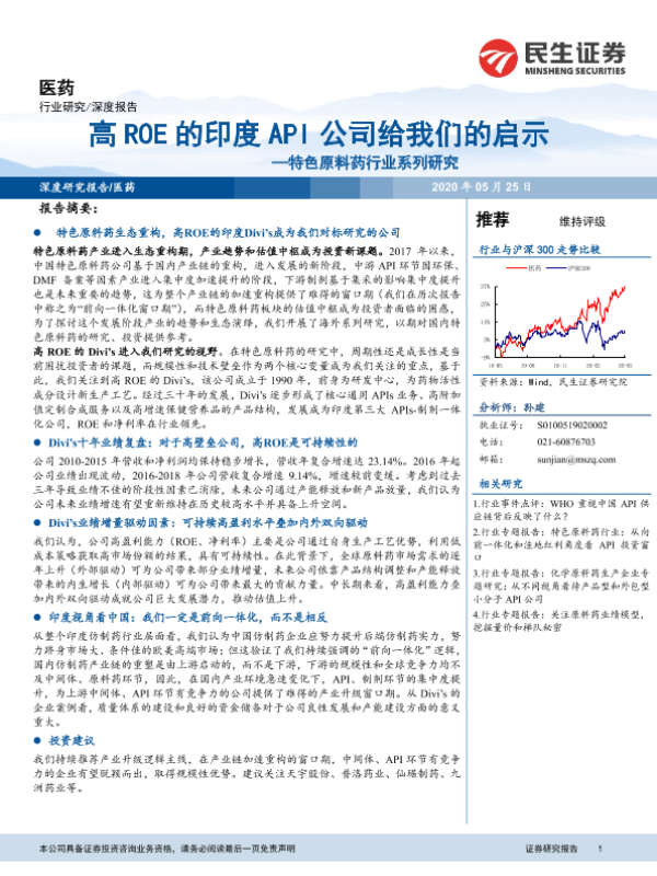 【民生证券】【20200525】高ROE的印度API公司给我们的启示—特色原料药行业系列研究-28页 行业研究