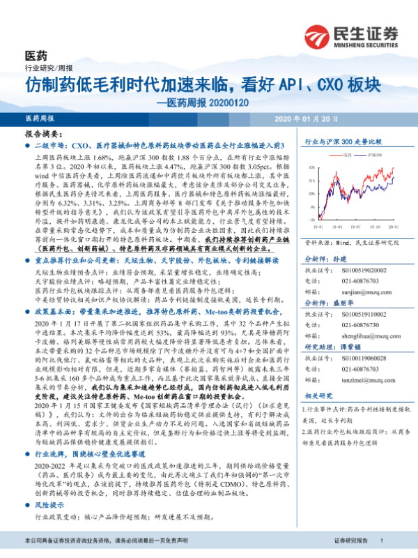 【民生证券】【20200120】仿制药低毛利时代加速来临,看好API、CXO板块-15页 行业研究