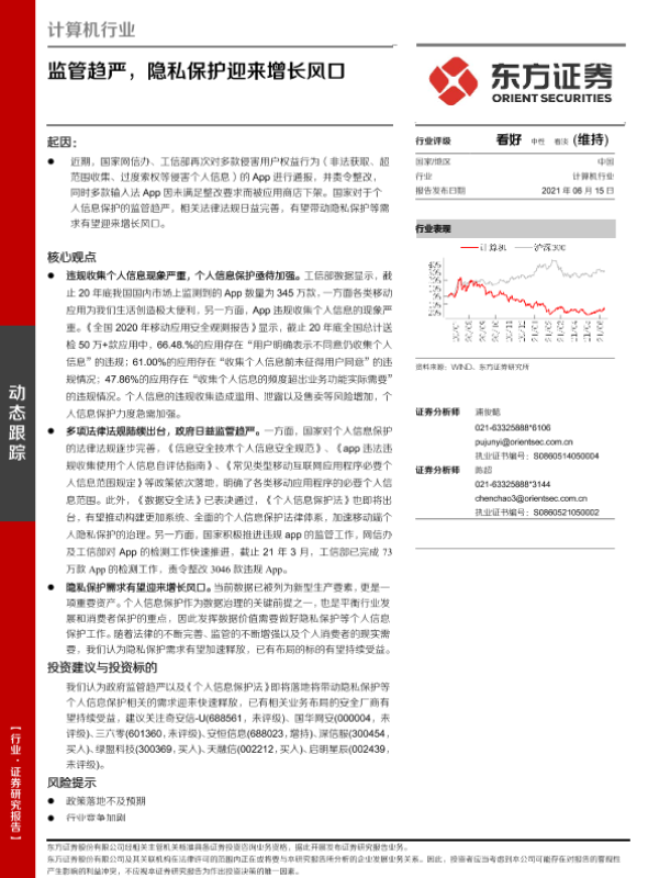 【东方证券】【20210615】计算机行业:监管趋严,隐私保护迎来增长风口-3页 行业研究