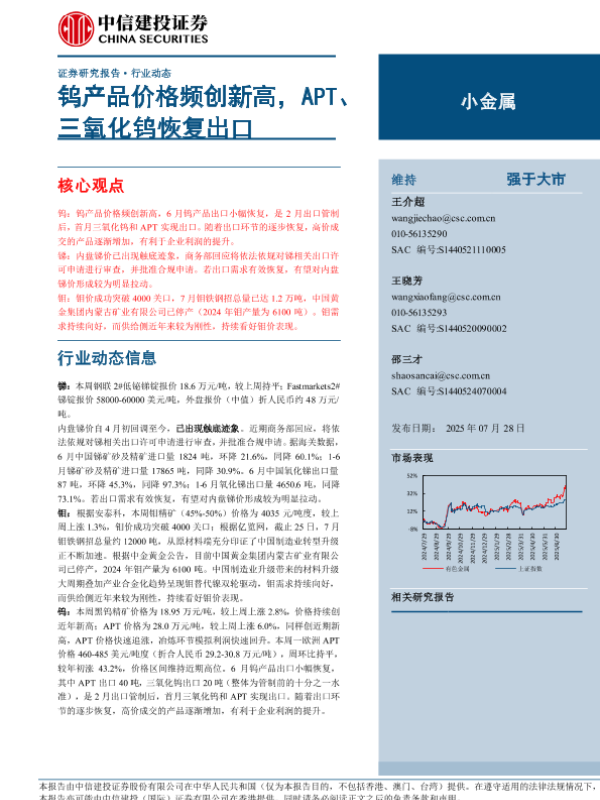 【中信建投证券】【202507】钨产品价格频创新高,APT、三氧化钨恢复出口-10页 证券期货研究报告