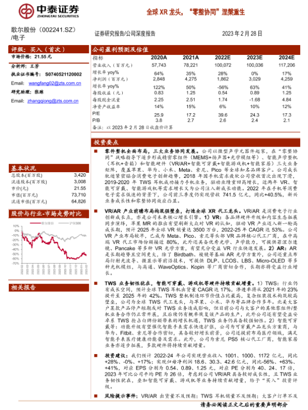 【中泰证券】【20230228】全球XR龙头,“零整协同”涅槃重生-34页 行业研究