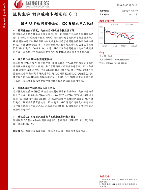 【国联证券】【20240331】医药生物行业前列腺癌专题系列(一) 国产AR抑制剂有望崛起,XDC赛道大单品赋能-24页 行业研究