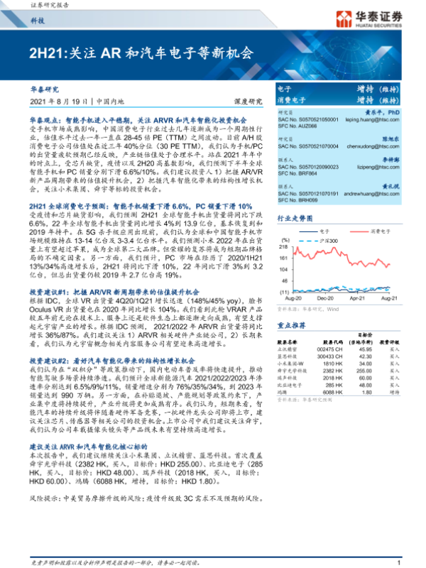 【华泰证券】【20210819】2H21:关注AR和汽车电子等新机会-68页 行业研究