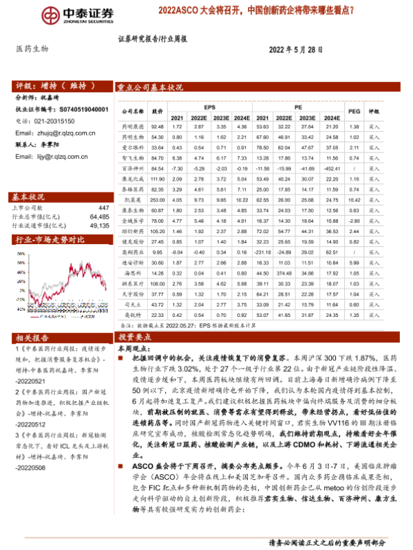 【中泰证券】【20220528】2022 ASCO大会将召开,中国创新药企将带来哪些看点?-13页 行业研究