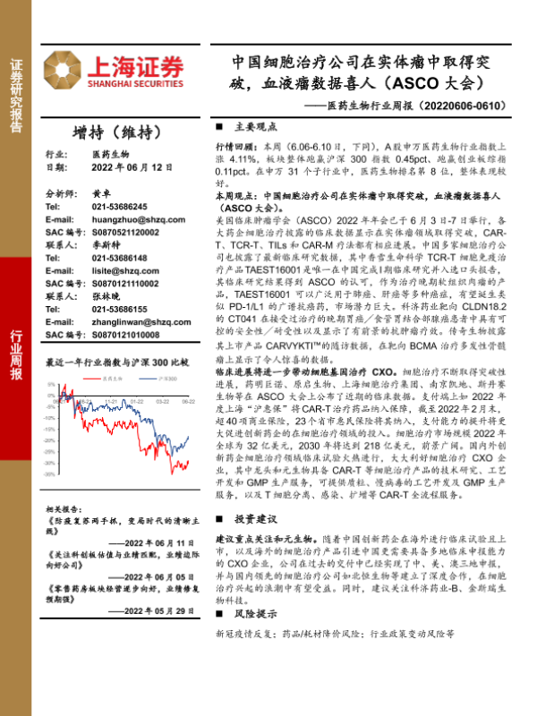 【上海证券】【20220612】医药生物行业周报:中国细胞治疗公司在实体瘤中取得突破,血液瘤数据喜人-29页 行业研究