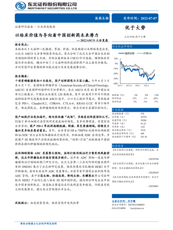 【东北证券】【20220707】医药生物行业2022ASCO大会复盘:以临床价值为导向看中国创新药未来潜力-54页 行业研究