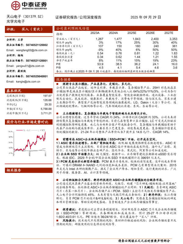 【中泰证券】【202509】天山电子(301379.SZ) 光学光电子 证券研究报告/公司深度报告-28页 证券期货研究报告