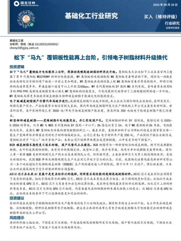 【国金证券】【2024】松下“马九”覆铜板性能再上台阶,引领电子树脂材料升级换代-11页 证券期货研究报告