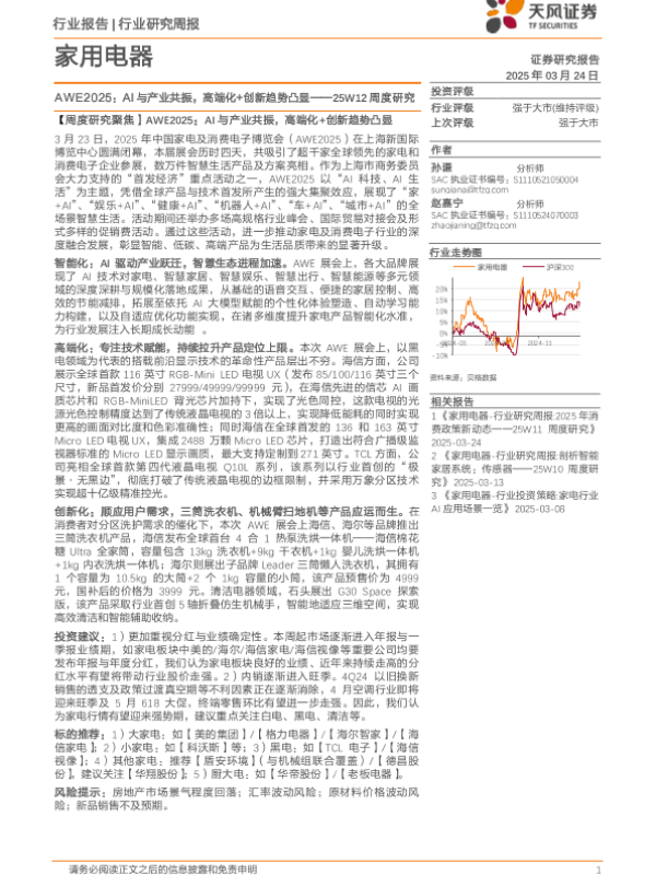 【天风证券】【20250324】20250324-天风证券-家用电器25W12周度研究:AWE2025:AI与产业共振,高端化+创新趋势凸显-15页 行业研究
