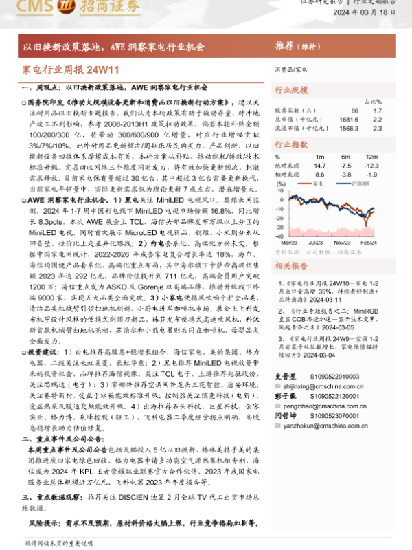 【海通证券】【20240318】20240318-招商证券-家电行业周报24W11:以旧换新政策落地,AWE洞察家电行业机会-11页 行业研究