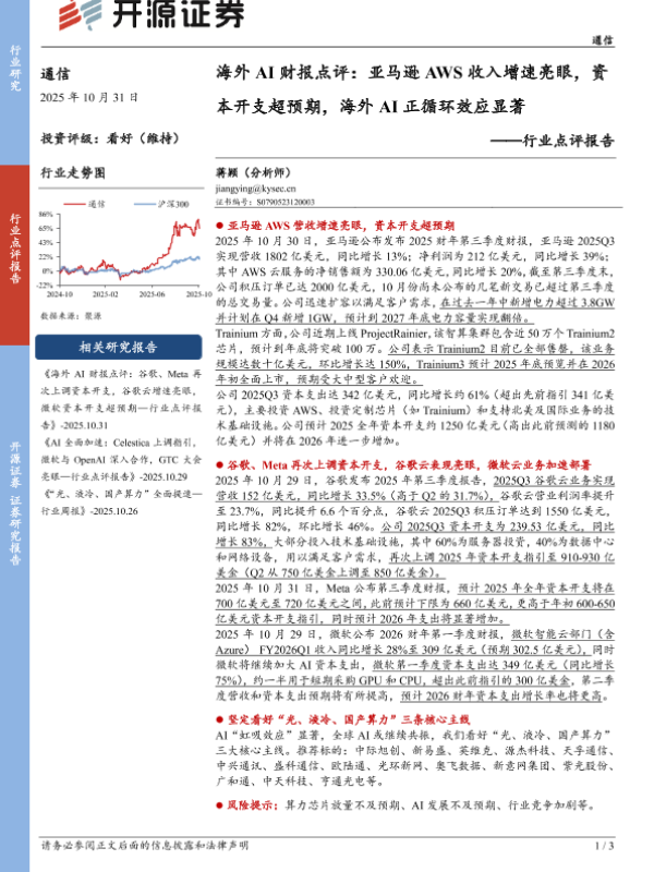 【开源证券】【202510】海外AI财报点评:亚马逊AWS收入增速亮眼,资本开支超预期,海外AI正循环效应显著-3页 证券期货研究报告