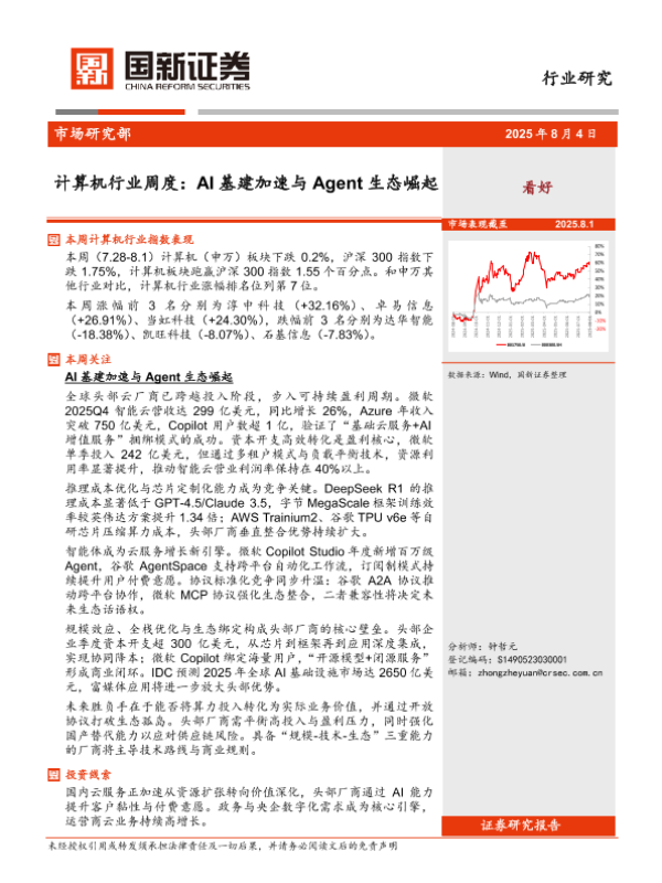 【国新证券】【20250804】计算机行业周度:AI基建加速与Agent生态崛起-13页 证券期货研究报告