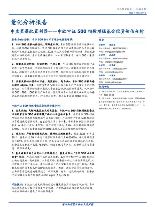 【国盛证券】【202508】中盘蓝筹配置利器——中欧中证 500指数增强基金投资价值分析-19页 证券期货研究报告