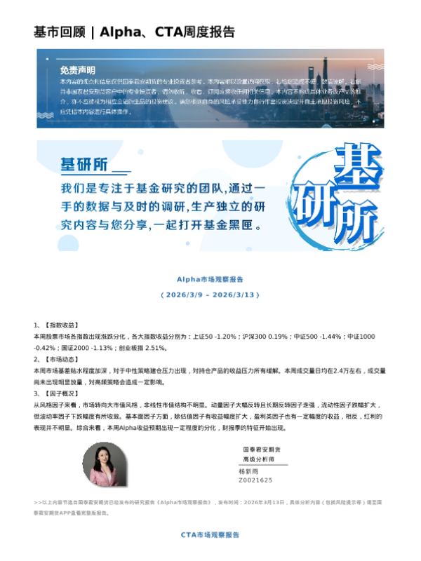 【国泰君安期货】【202603】基市回顾|Alpha、CTA周度报告-3页 证券期货研究报告