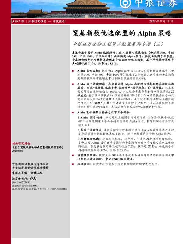 【中银证券】【20230912】金融工程资产配置系列专题(三):宽基指数优选配置的Alpha策略-18页 行业研究