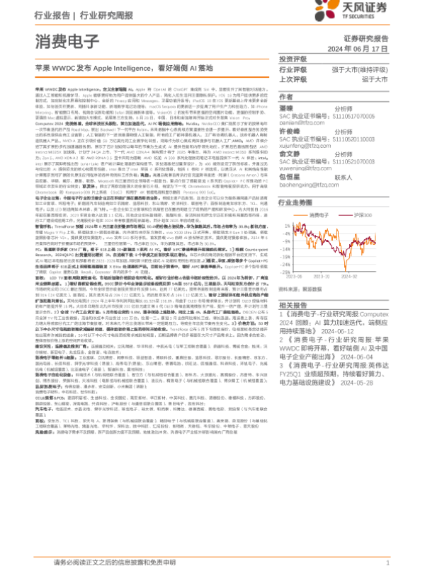 【天风证券】【20240617】消费电子行业研究周报:苹果WWDC发布Apple Intelligence,看好端侧AI落地-53页 行业研究