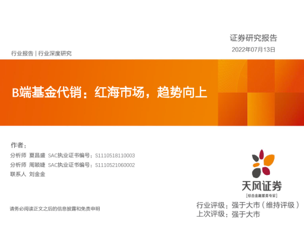【天风证券】【20220713】非银金融行业深度研究:B端基金代销:红海市场,趋势向上-46页 行业研究
