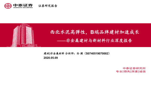 【中泰证券】【20200509】非金属建材与新材料行业深度报告:西北水泥高弹性,B端品牌建材加速成长-24页 行业研究