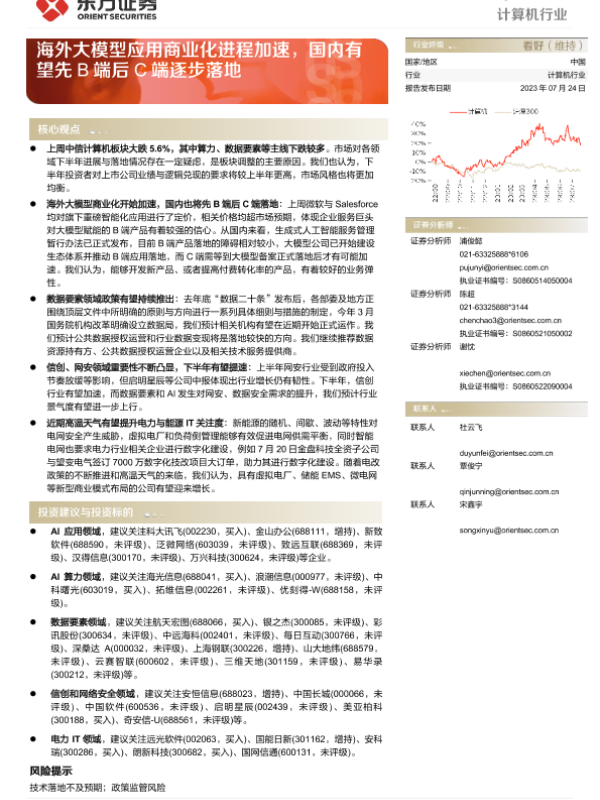 【东方证券】【20230724】计算机行业行业周报:海外大模型应用商业化进程加速,国内有望先B端后C端逐步落地-11页 行业研究