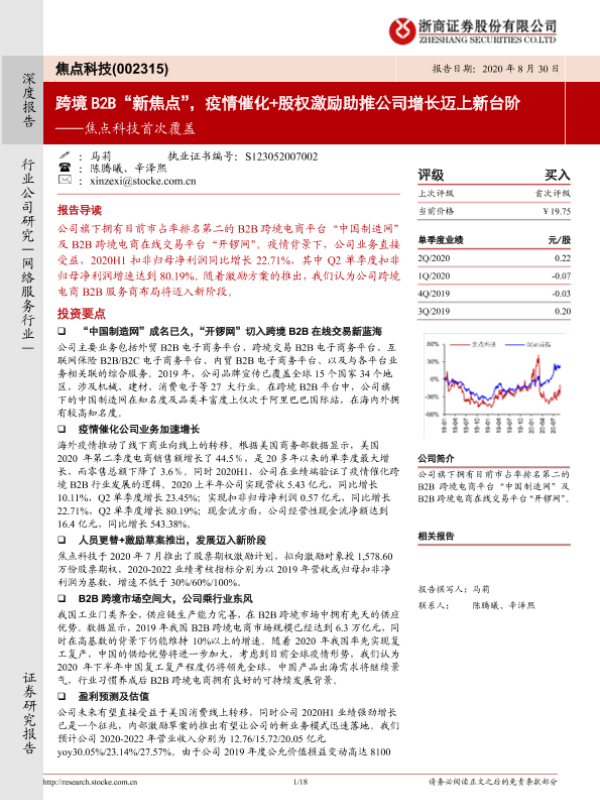 【浙商证券】【20200830】焦点科技首次覆盖:跨境B2B“新焦点”,疫情催化+股权激励助推公司增长迈上新台阶-18页 行业研究