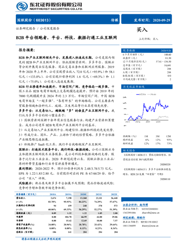 【东北证券】【20200929】B2B平台领跑者,平台、科技、数据打通工业互联网-35页 行业研究