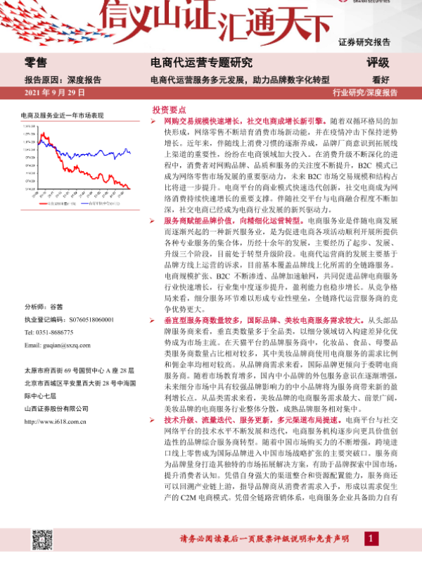 【山西证券】【20210929】零售行业电商代运营专题研究:电商代运营服务多元发展,助力品牌数字化转型-37页 行业研究