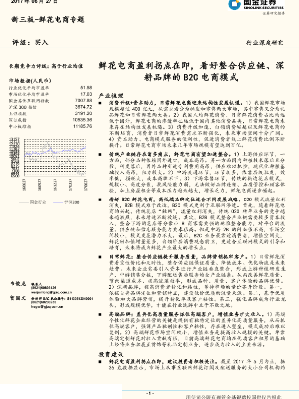 【国金证券】【20170627】2017.06.27-鲜花电商盈利拐点在即,看好整合供应链、深耕品牌的B2C电商模式-22页 行业研究