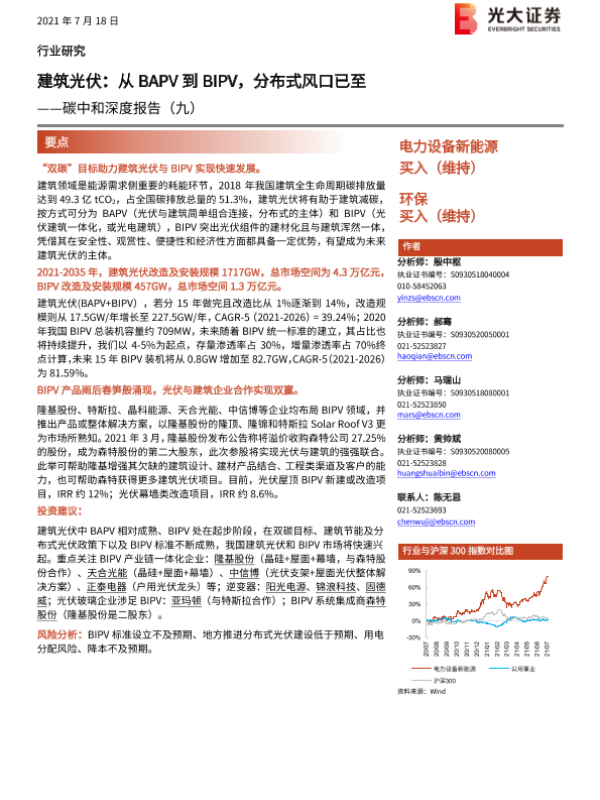 【光大证券】【20210718】电力设备新能源、环保行业碳中和深度报告(九):建筑光伏,从BAPV到BIPV,分布式风口已至-48页 行业研究
