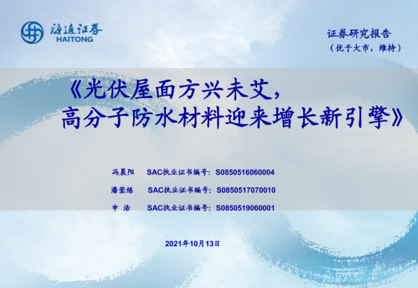 【海通证券】【20211013】光伏屋面方兴未艾,高分子防水材料迎来增长新引擎-31页 行业研究