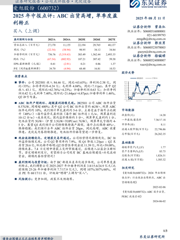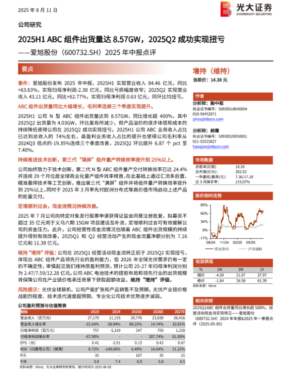 【光大证券】【20250811】2025年中报点评:2025H1_ABC组件出货量达8.57GW,2025Q2成功实现扭亏-3页 证券期货研究报告