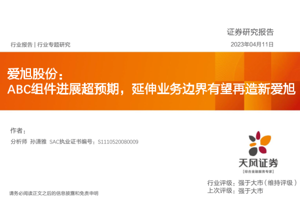 【天风证券】【20230411】爱旭股份:ABC组件进展超预期,延伸业务边界有望再造新爱旭-27页 行业研究