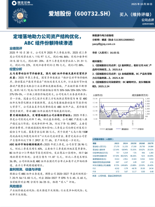 【国金证券】【202510】20251030-国金证券-爱旭股份-600732.SH-公司点评_定增落地助力公司资产结构优化_ABC组件份额持续渗透-4页 证券期货研究报告