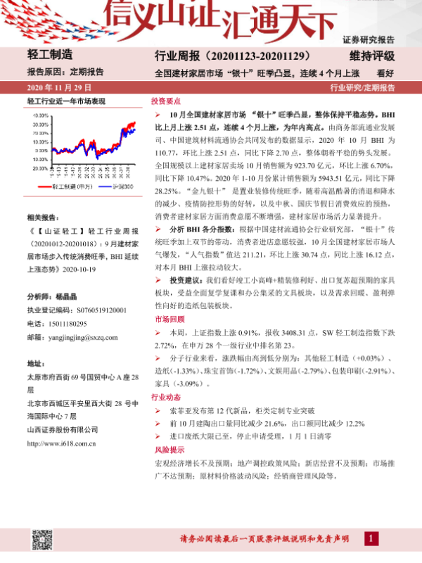 【山西证券】【20201129】20201129-山西证券-轻工制造行业周报:全国建材家居市场“银十”旺季凸显,连续4个月上涨-13页 行业研究