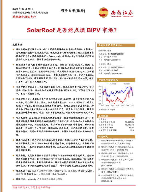 【西南证券】【20200318】SolarRoof是否能点燃BIPV市场?-14页 行业研究