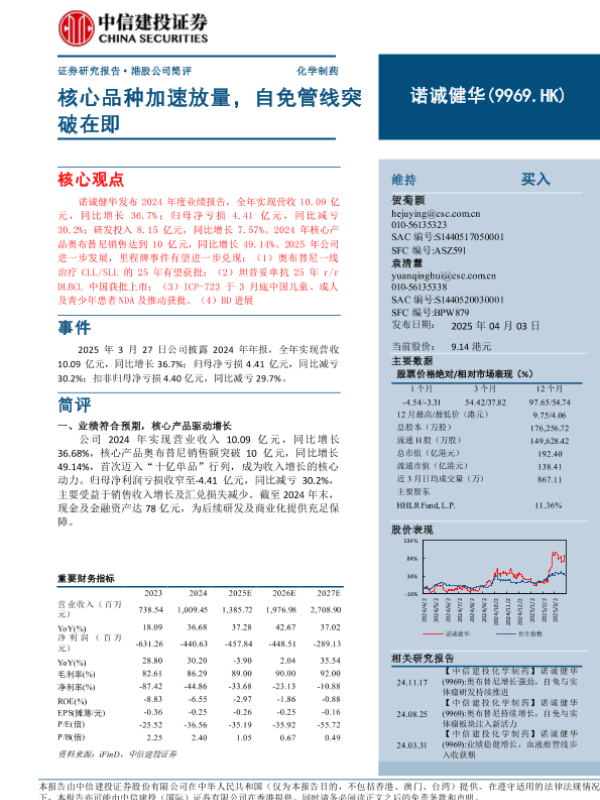 【中信建投证券】【20250403】诺诚健华核心品种加速放量,自免管线突破在即-14页 证券期货研究报告