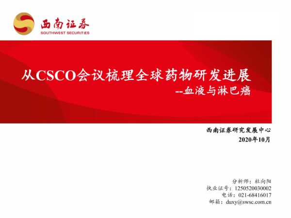 【西南证券】【20201008】血液与淋巴癌:从CSCO会议梳理全球药物研发进展-21页 行业研究
