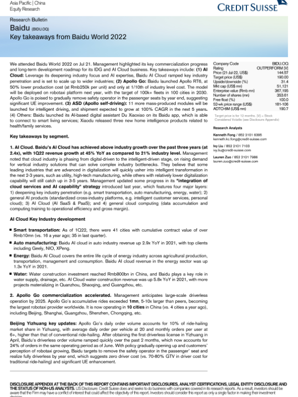 【Credit Suisse】【20220722】CS-Baidu-6页 公司研究