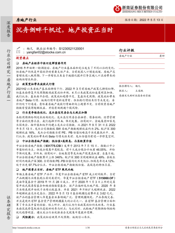 【浙商证券】【20220514】房地产行业:沉舟侧畔千帆过,地产投资正当时-30页 行业研究