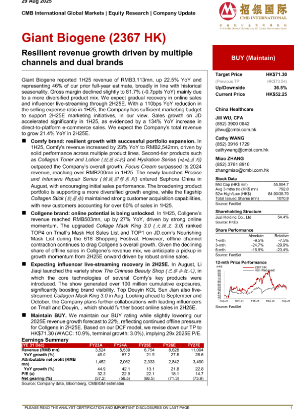 【CMB International Global Markets】【20250829】Giant Biogene-Resilient revenue growth driven by multiple channels and dual brands-5页 证券期货研究报告