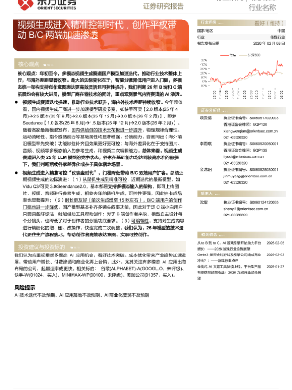 【东方证券】【202602】视频生成进入精准控制时代,创作平权带动B/C两端加速渗透-3页 证券期货研究报告
