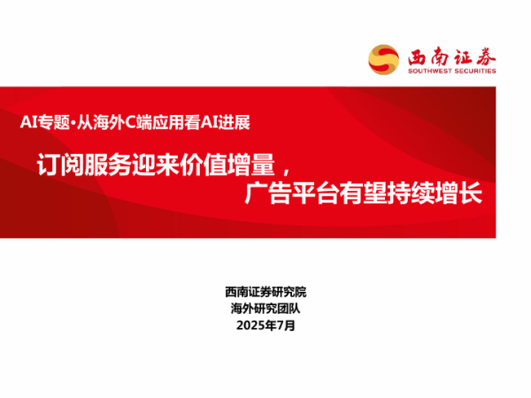 【西南证券】【202507】AI专题·从海外C端应用看AI进展:订阅服务迎来价值增量,广告平台有望持续增长-41页 行业研究