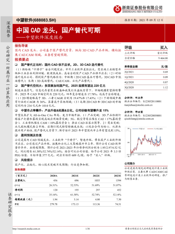 【浙商证券】【20210912】中望软件深度报告:中国CAD龙头,国产替代可期-30页 行业研究