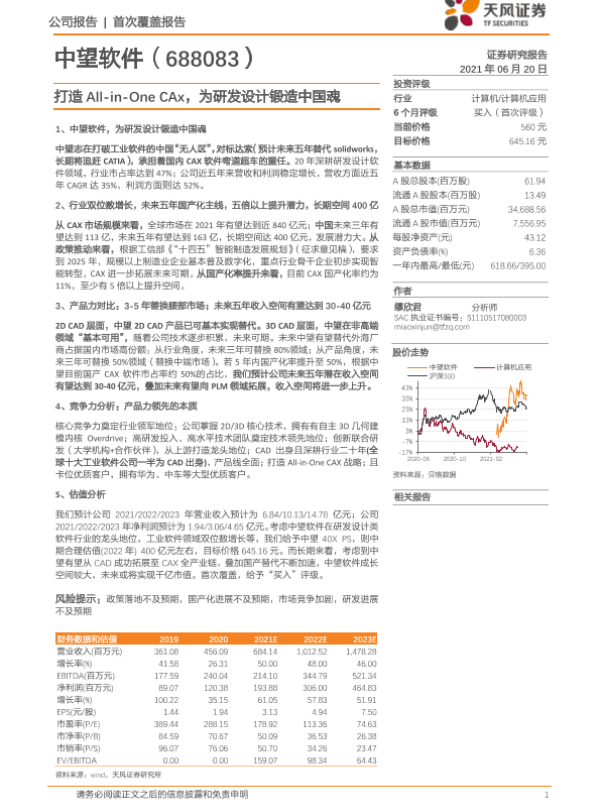 【国泰君安证券】【20210817】中望软件(688083) - 工业设计软件国产替代先锋-20页 行业研究