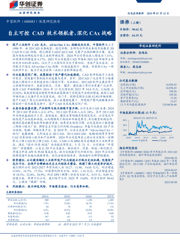 【华创证券】【20250722】中望软件(688083)深度研究报告:自主可控CAD技术领航者,深化CAx战略-34页 证券期货研究报告