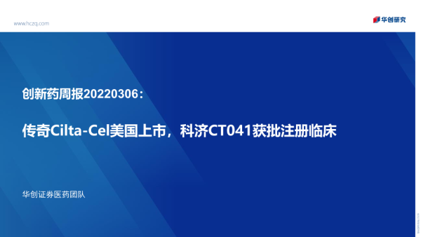 【华创证券】【20220306】创新药周报:传奇Cilta-Cel美国上市,科济CT041获批注册临床-25页 行业研究